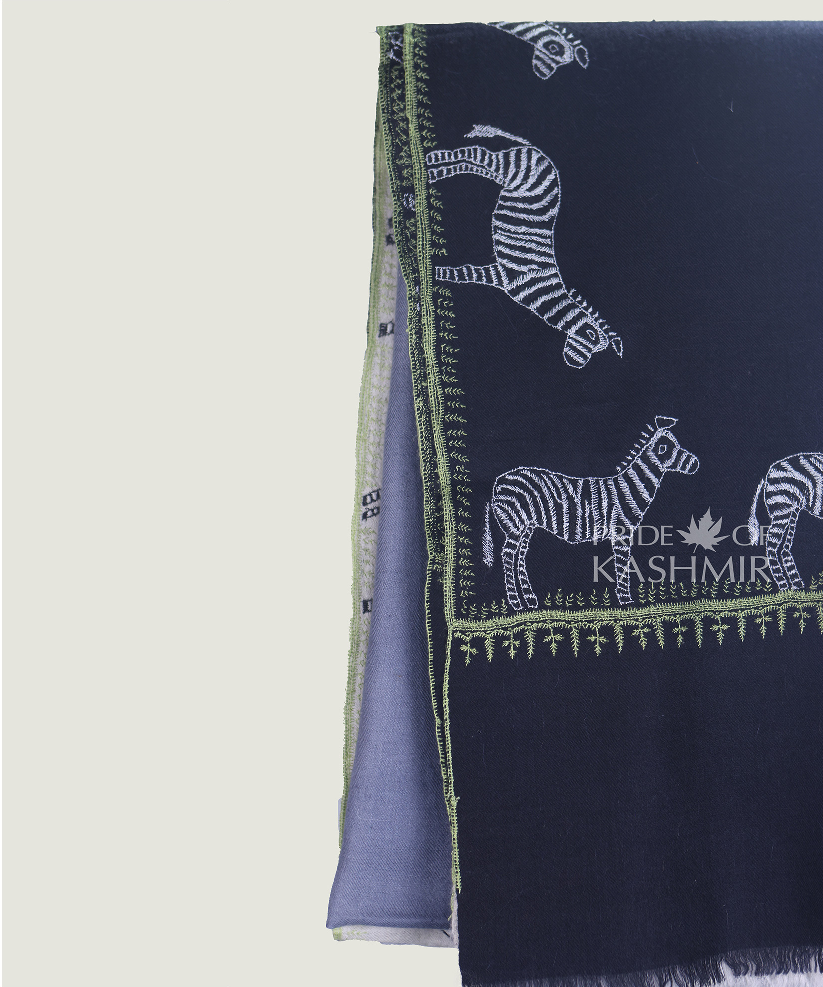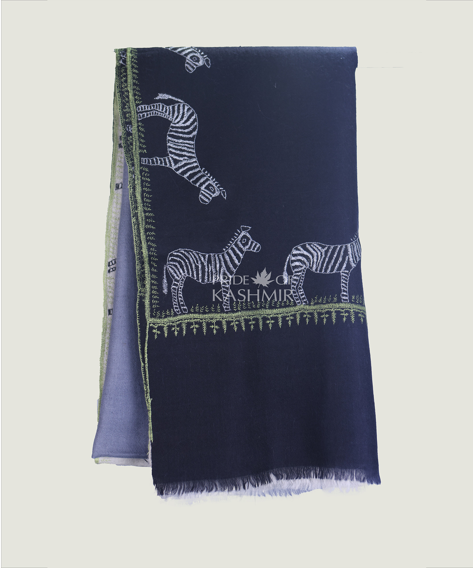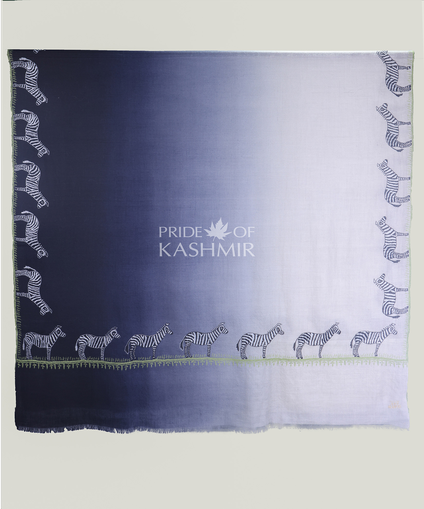 Pashmina Shawl in ocean teal hues with Zebra on the borders gives this pashmina shawl a refreshing, vibrant appeal, perfect for any occasion.Craft: Handwoven ry